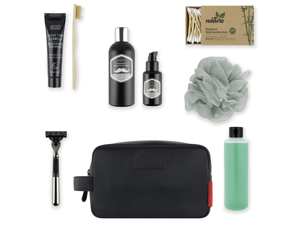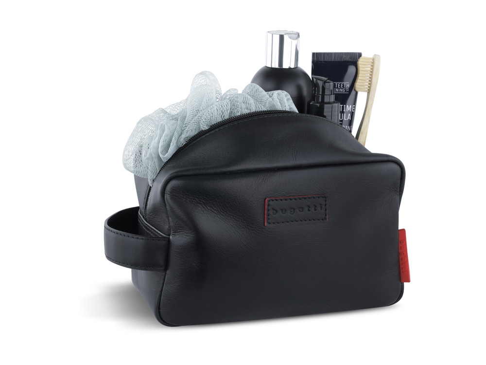Несессер дорожный BUGATTI Clark, чёрный, воловья кожа/полиэстер, 20х10х13 см, 2,5 л