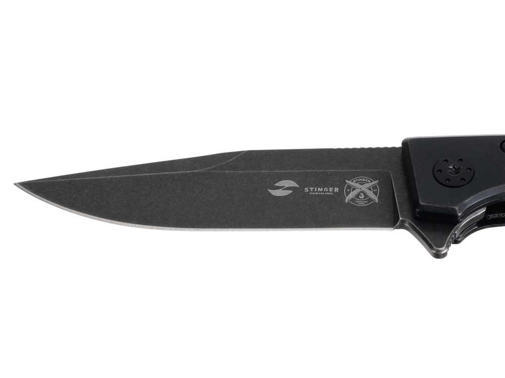 Нож складной Stinger, 102 мм, (черный), материал рукояти: нержавеющая сталь, стеклотекстолит G10