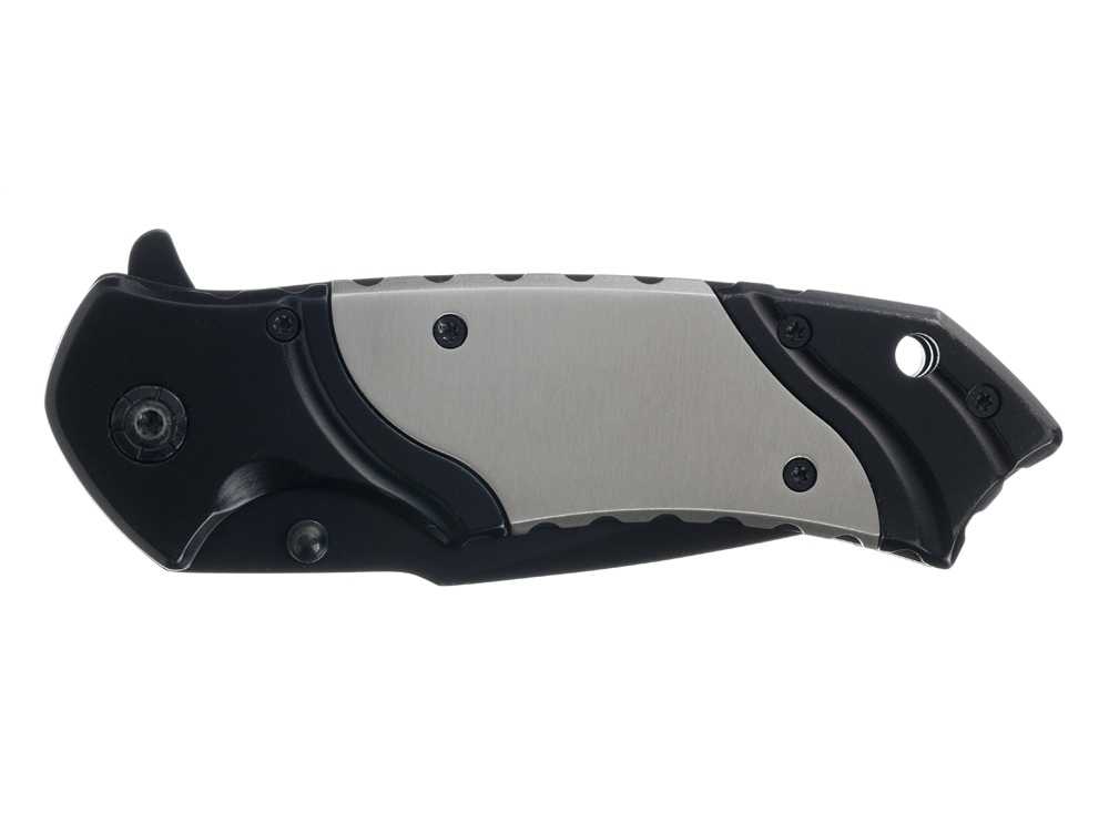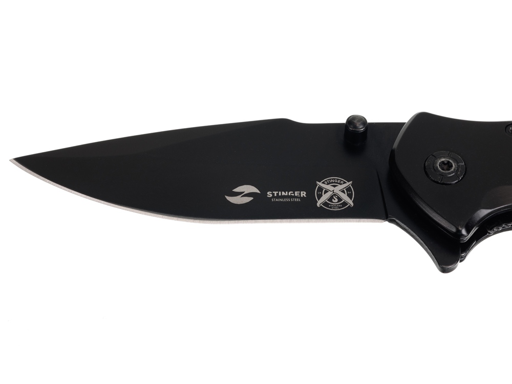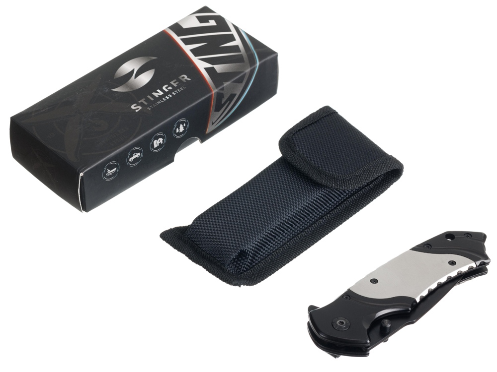 Нож складной Stinger, 120 мм, (черный), материал рукояти: нержавеющая сталь (серебристый/черный)