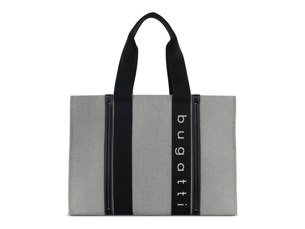 Сумка-тоут женская BUGATTI Ambra, серо-черный цвет, хлопок/полиэстер, 45х14х32 см