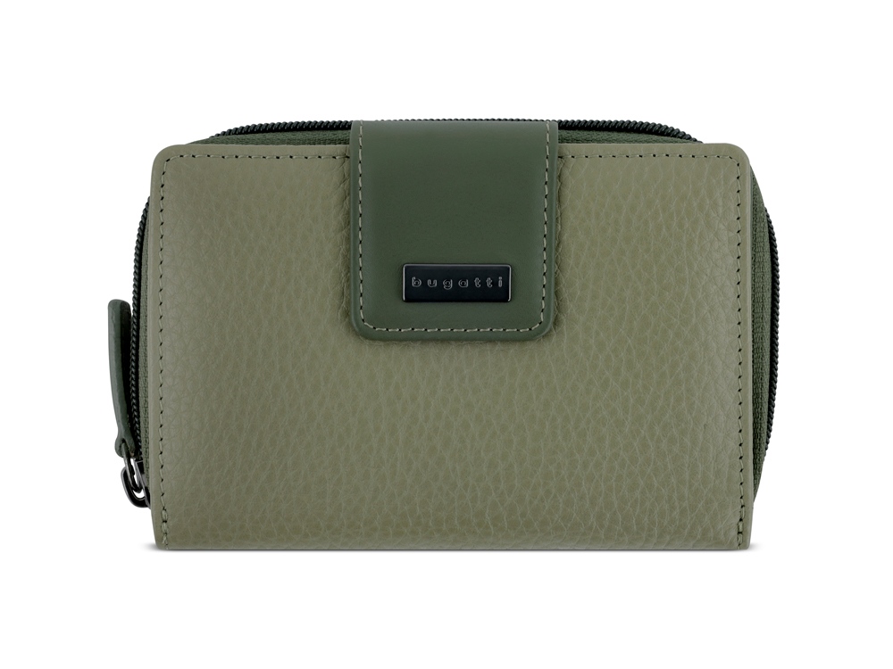 Кошелёк женский BUGATTI Sina, зеленый, воловья кожа/полиэстер, 13,7х3х9,5 см