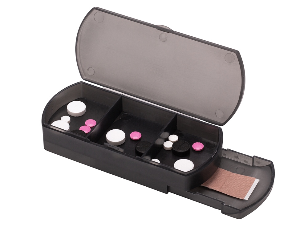 Таблетница с отделением для пластырей Treat, темно-серый