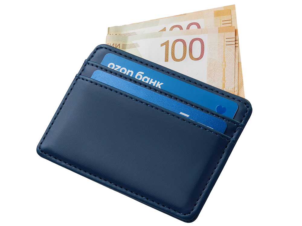 Картхолдер для двух карт и наличных денег с зажимом Crave, темно-синий
