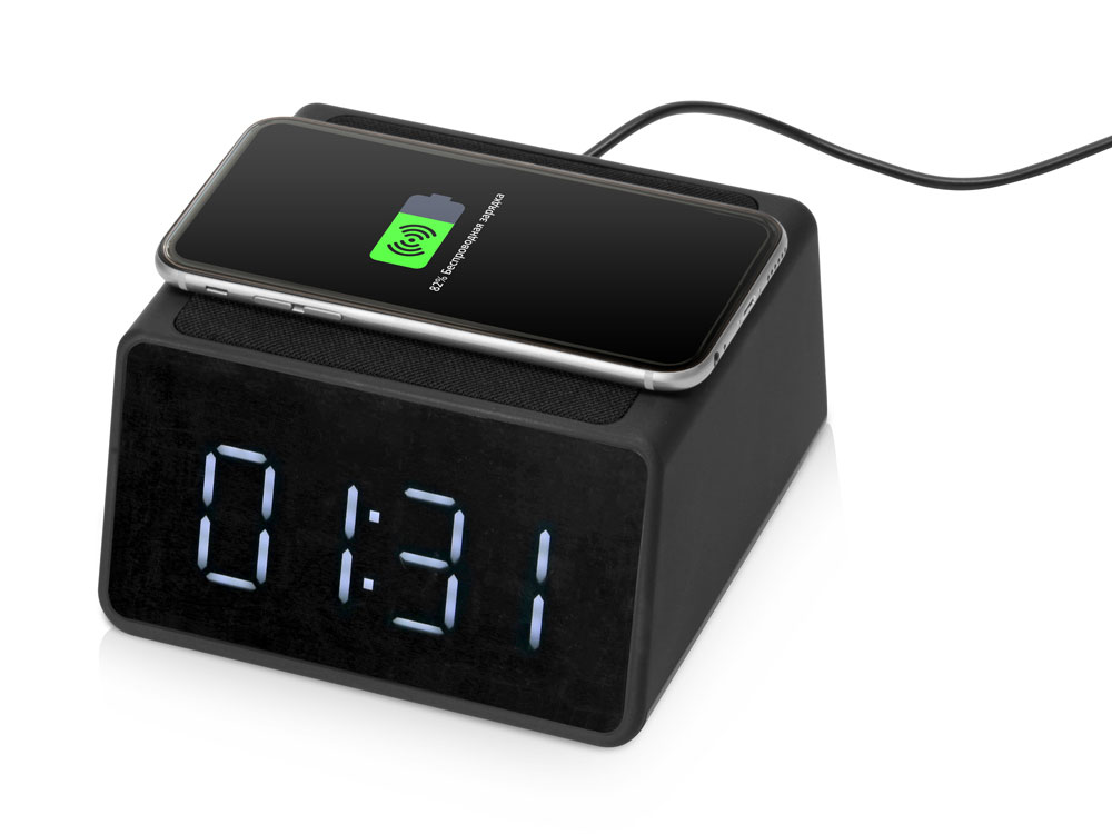 Беспроводная колонка с часами и функцией беспроводной зарядки Sentry, черный (P)