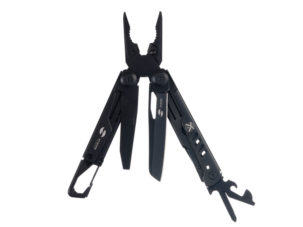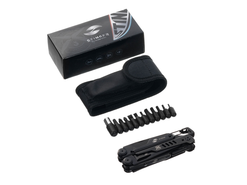 Мультитул Stinger, 115 мм, 14 функций, сталь, черный, в комплекте нейлоновый чехол