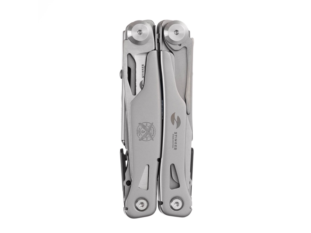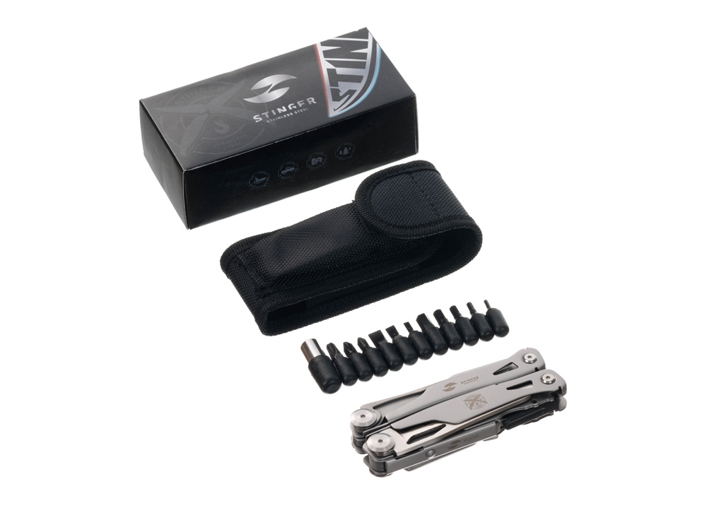 Мультитул Stinger, 106 мм, 15 функций, сталь, серебристый, в комплекте нейлоновый чехол