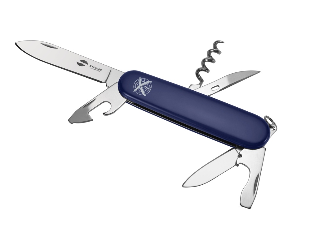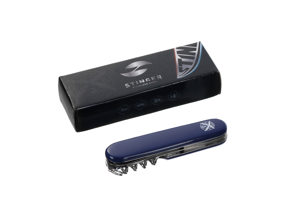 Нож перочинный Stinger, 90 мм, 11 функций, материал рукояти: АБС-пластик (синий)