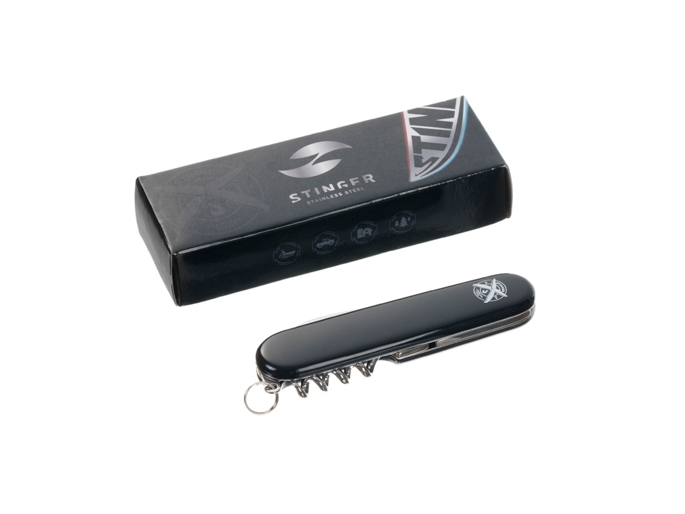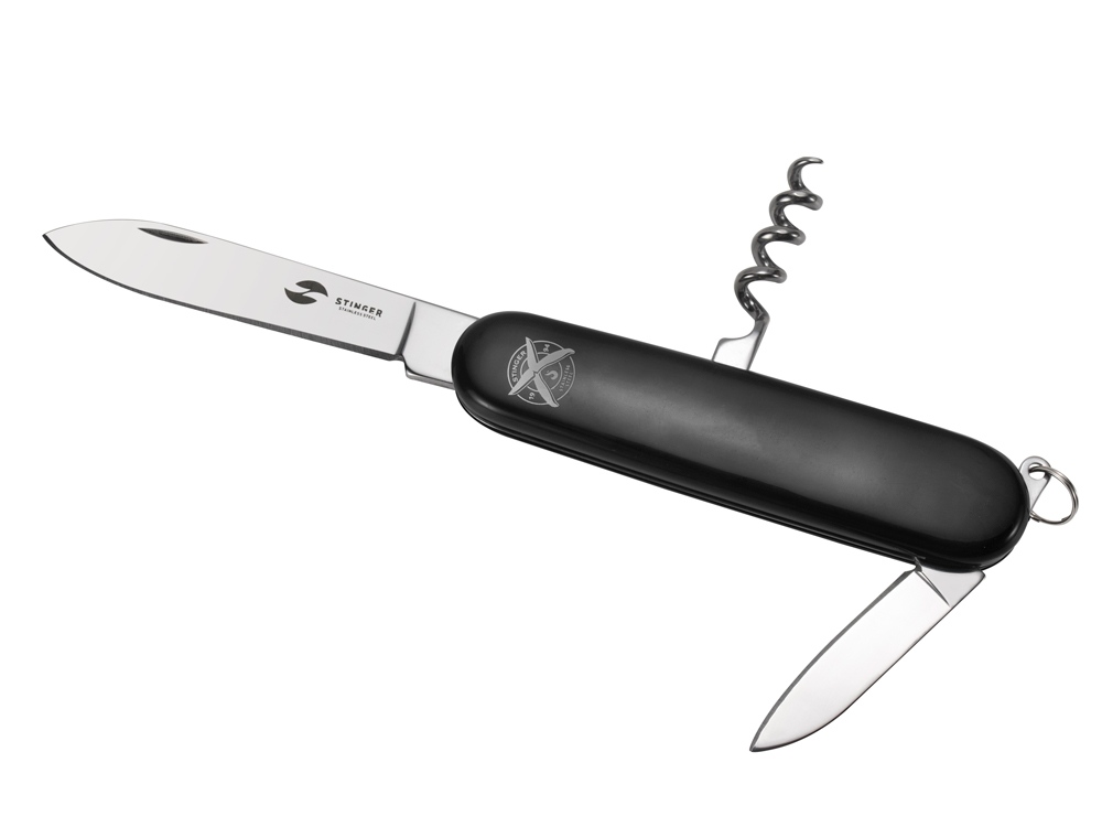 Нож перочинный Stinger, 90 мм, 4 функции, материал рукояти: АБС-пластик (черный)