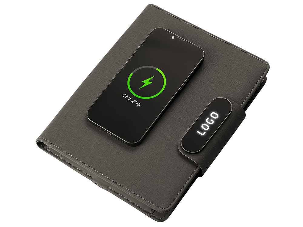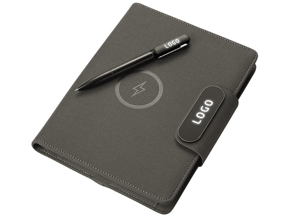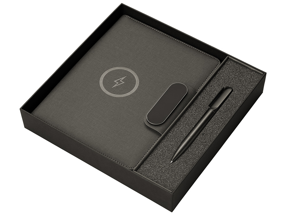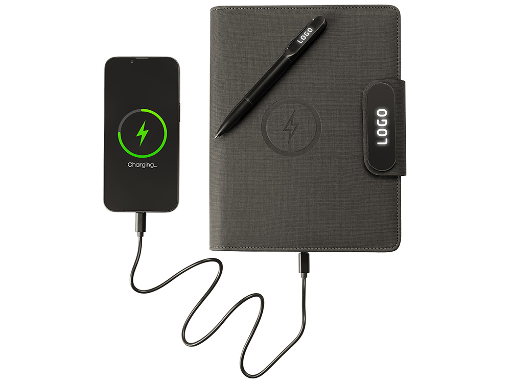 Подарочный набор металлическая ручка и блокнот А5 Twilight со светящимся логотипом и пауэрбэнком