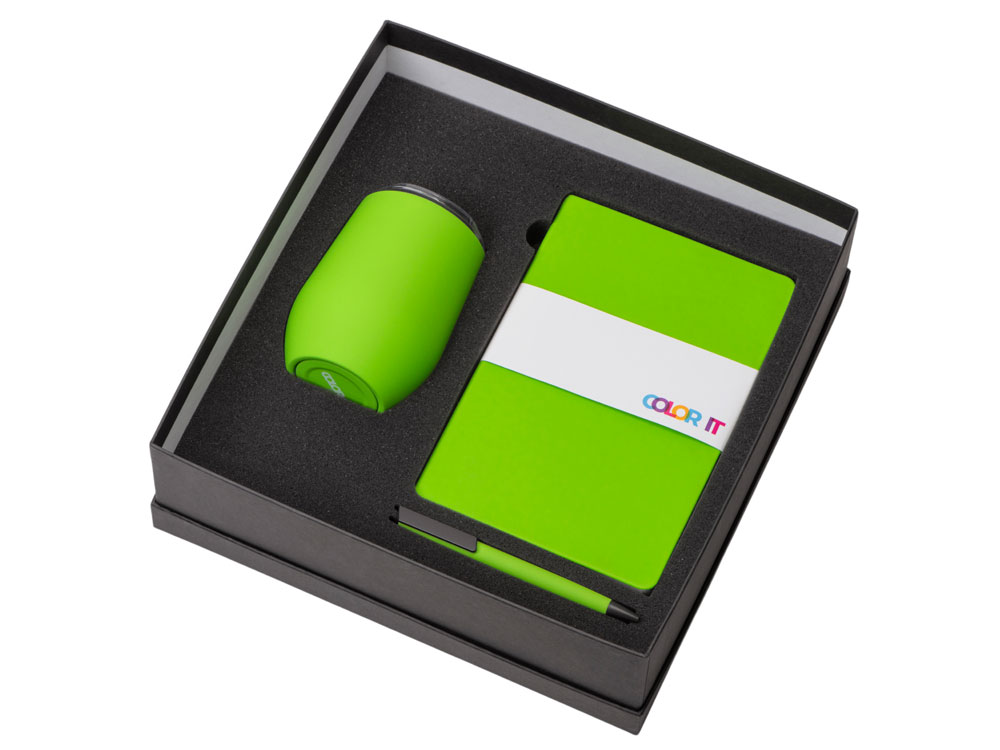 Подарочный набор c блокнотом C2, ручкой и термокружкой, зеленое яблоко