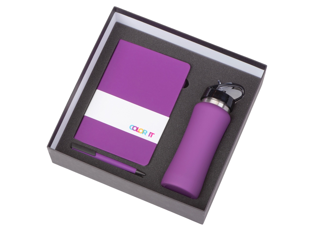 Подарочный набор c блокнотом C1, ручкой и бутылкой, фиолетовый