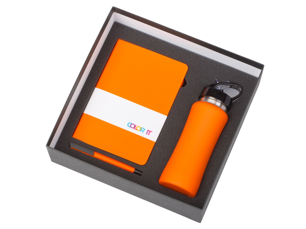 Подарочный набор c блокнотом C3, ручкой и бутылкой, оранжевый