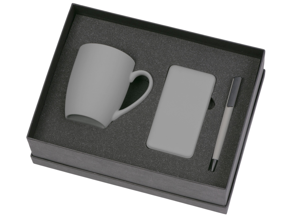 Подарочный набор c кружкой, пластиковой ручкой и повербанком С1, 5000 mAh, серый