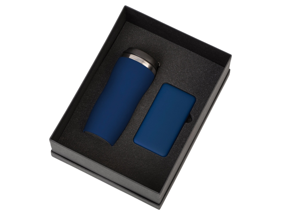 Подарочный набор c вакуумной термокружкой и повербанком С1, темно-синий