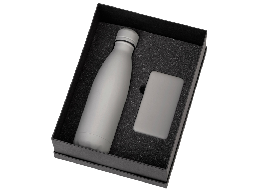 Подарочный набор с термобутылкой и повербанком С2, серый