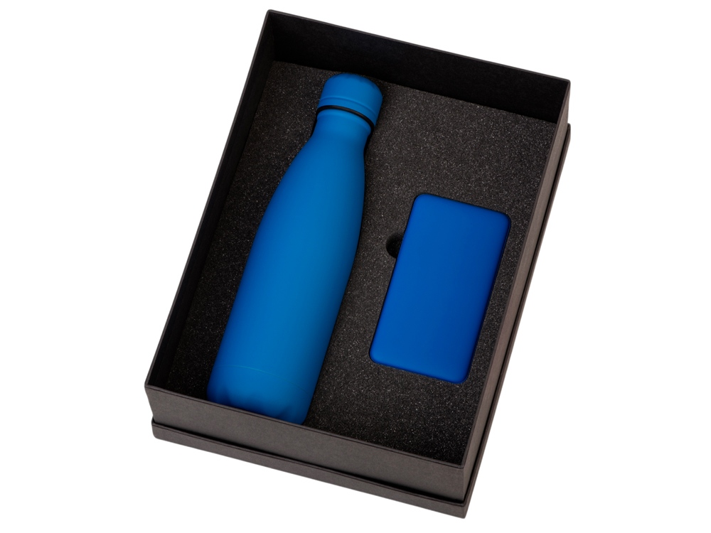 Подарочный набор с термобутылкой и повербанком С2, синий