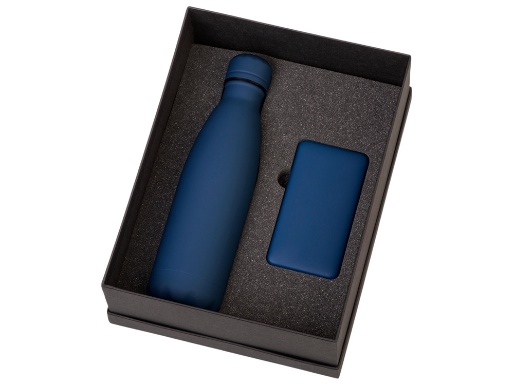 Подарочный набор с термобутылкой и повербанком С2, темно-синий
