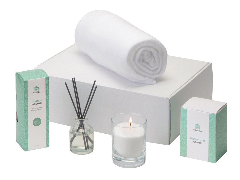 Подарочный набор White light 2.0 с пледом, диффузором, насыпной свечой