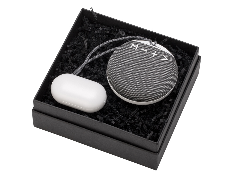 Подарочный набор с колонкой и наушниками Full Music, белый, серый