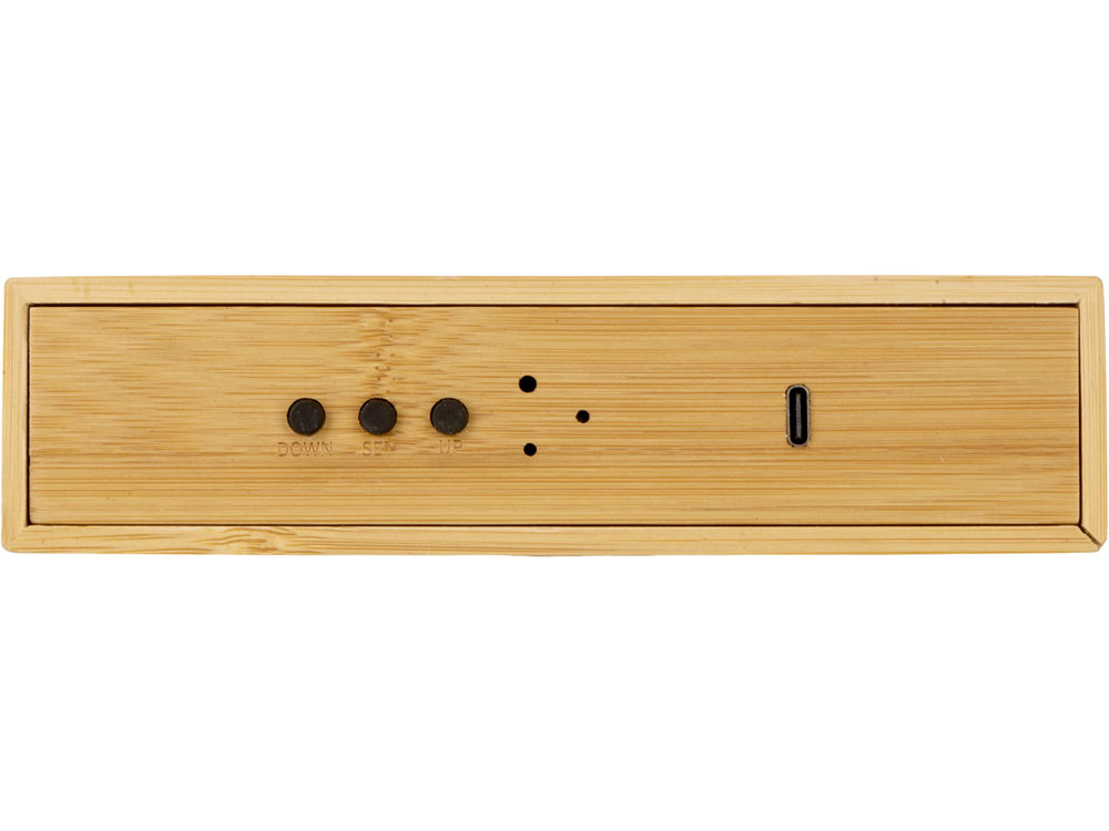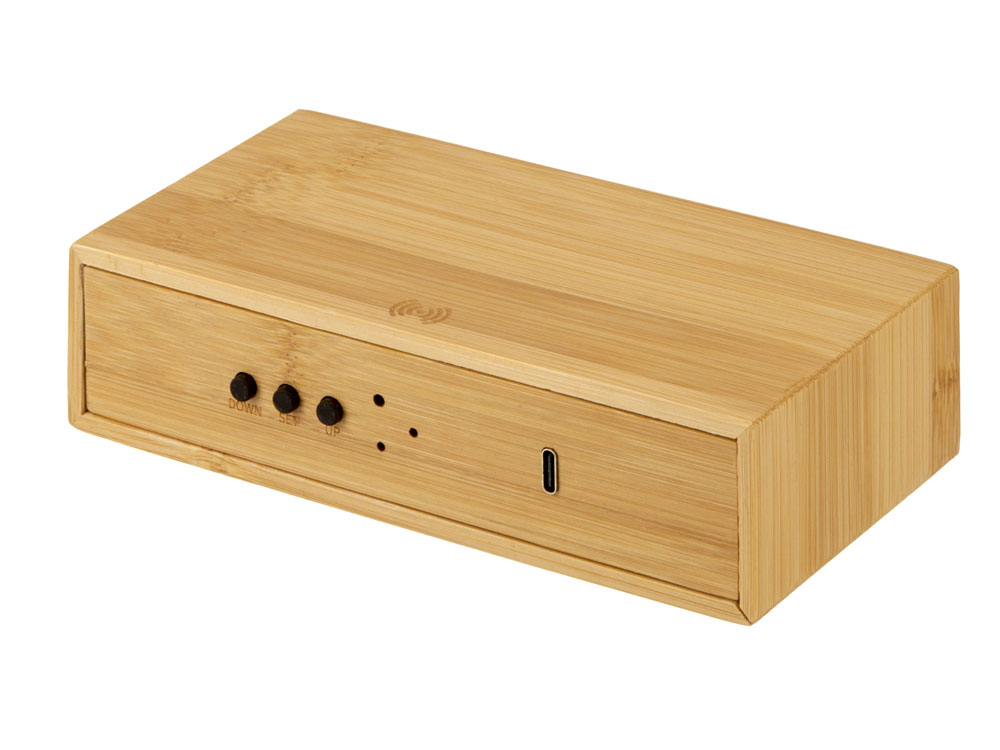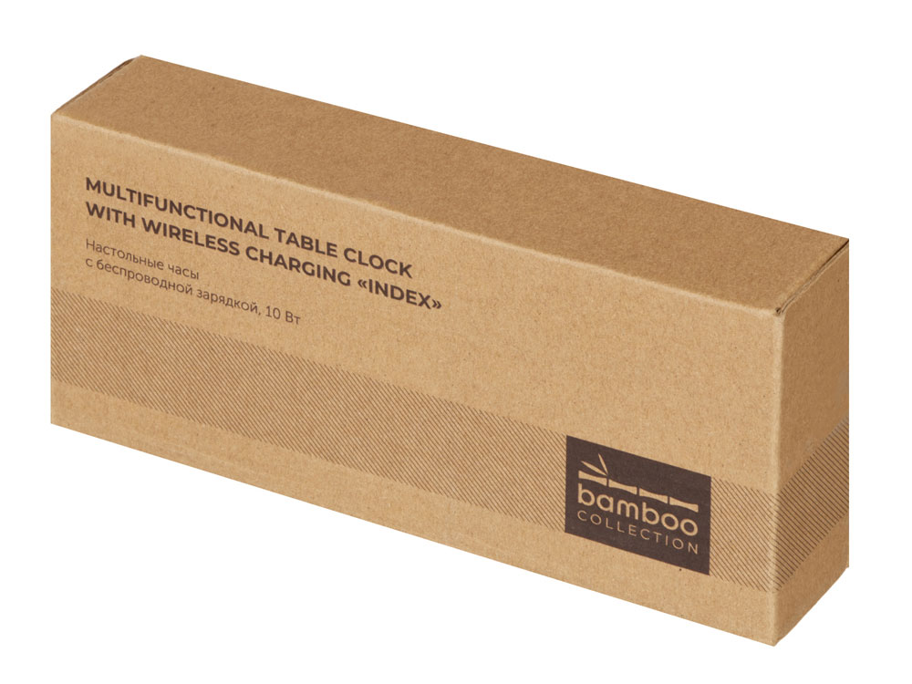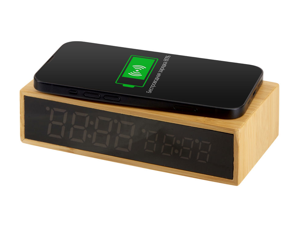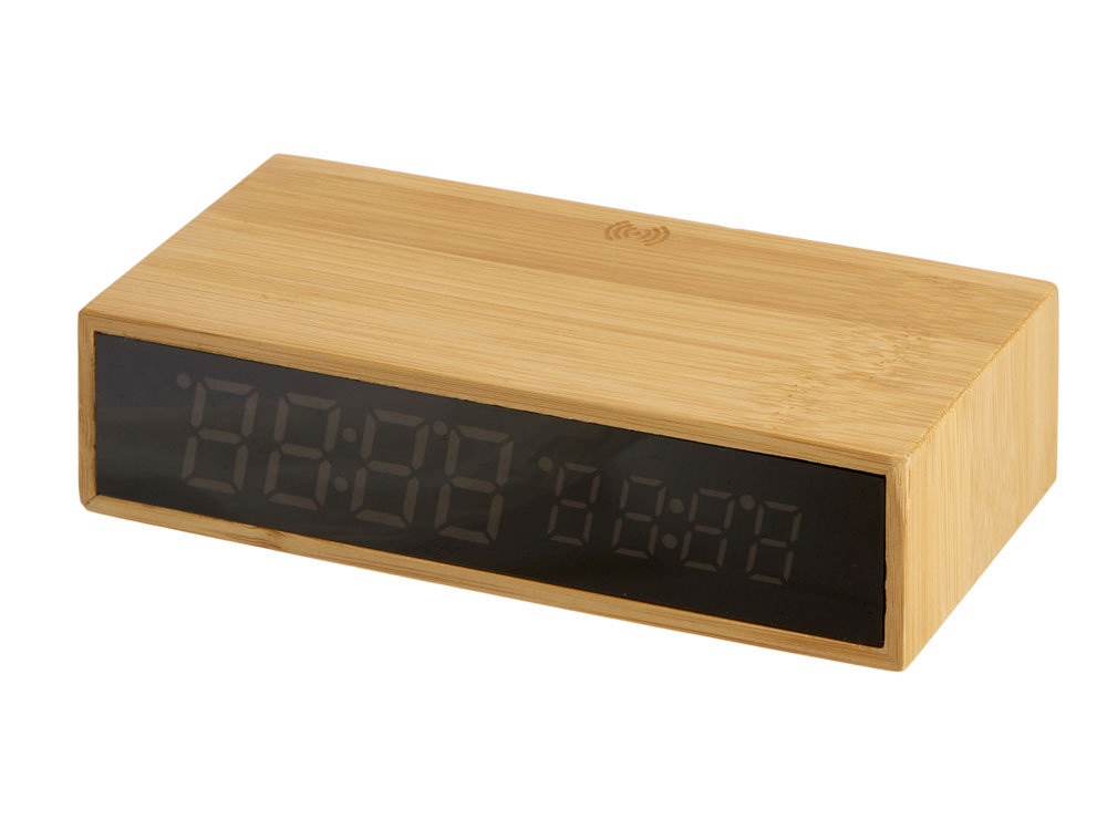 Часы настольные с беспроводной зарядкой Index, 10 Вт, бамбук (Р)