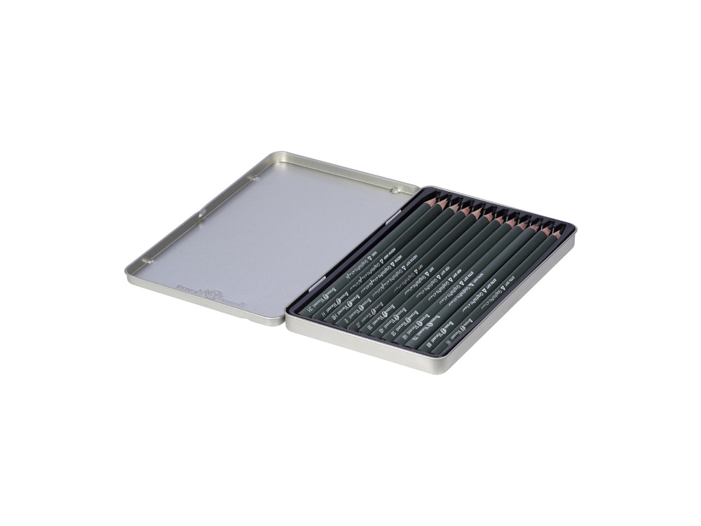 - Комплектность 12 карандашей разной твердости (2H, H, HB, B, 2B, 3B, 4B, 5B, 6B, 7B, 8B, 9B), металлическая коробка