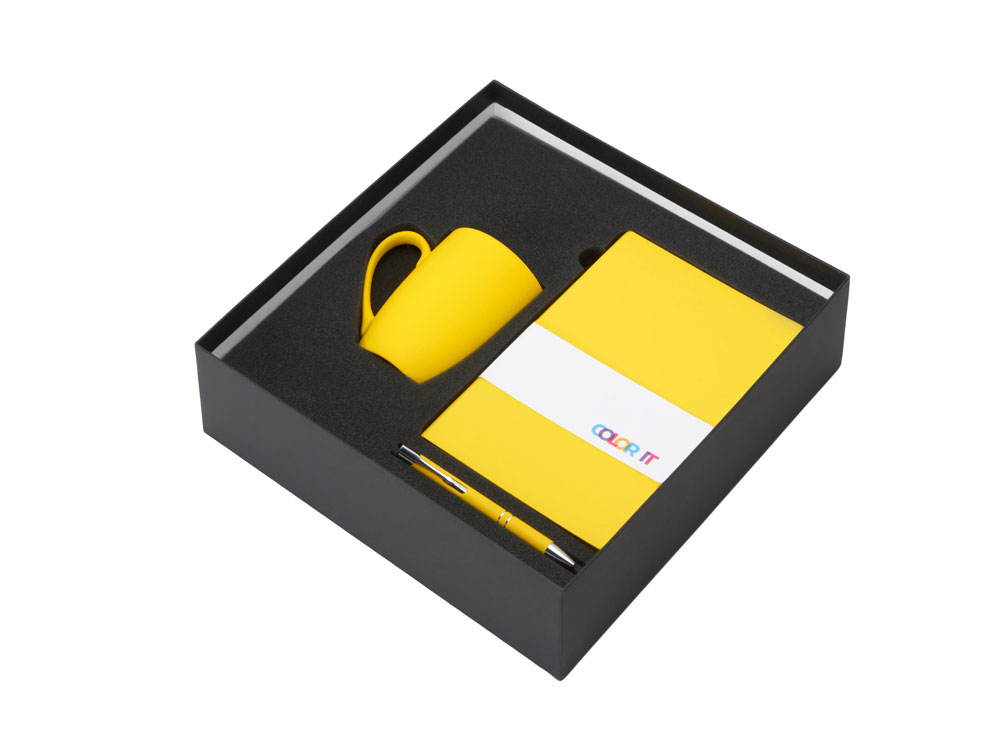 Подарочный набор с блокнотом С1, металлической ручкой и кружкой, желтый