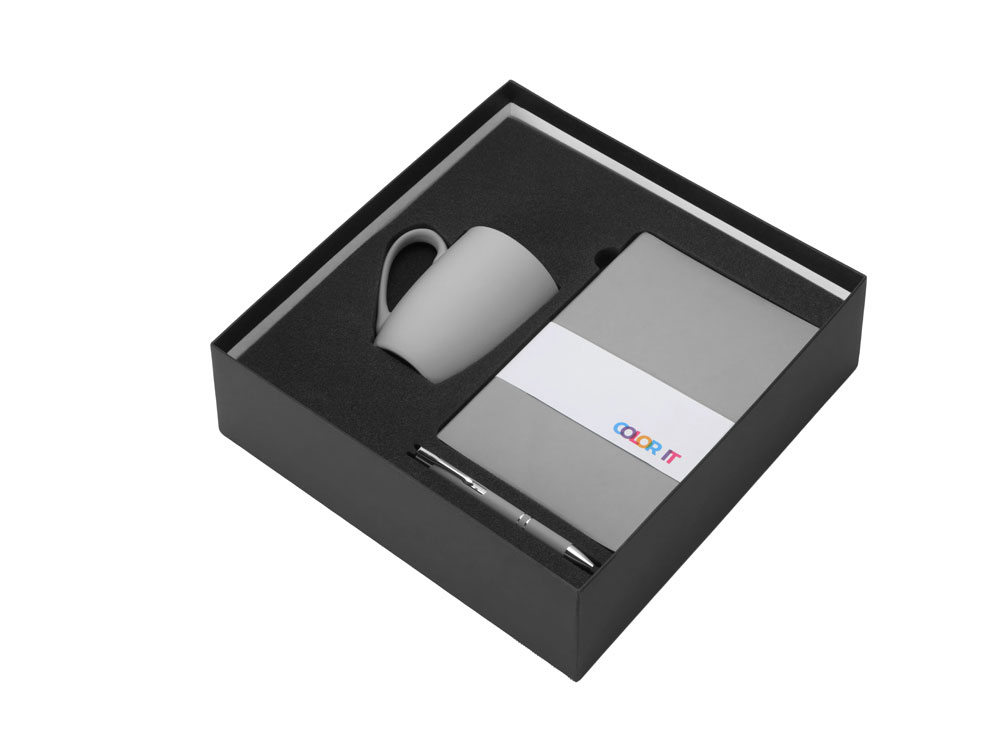 Подарочный набор с блокнотом С1, металлической ручкой и кружкой, серый