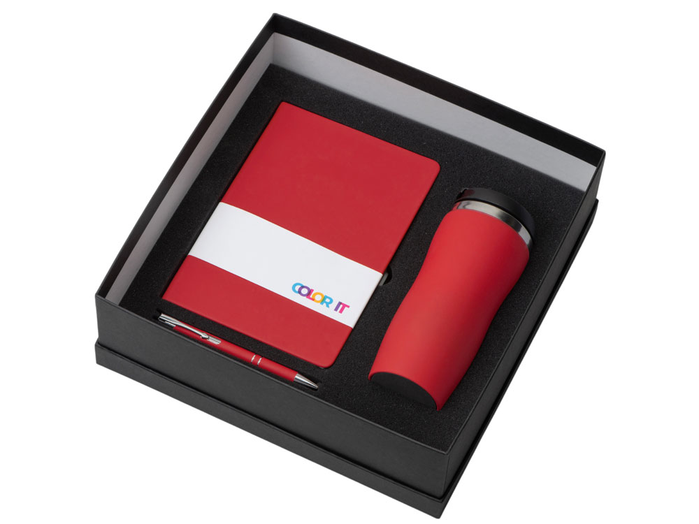Подарочный набор с блокнотом С2, металлической ручкой и термокружкой, красный