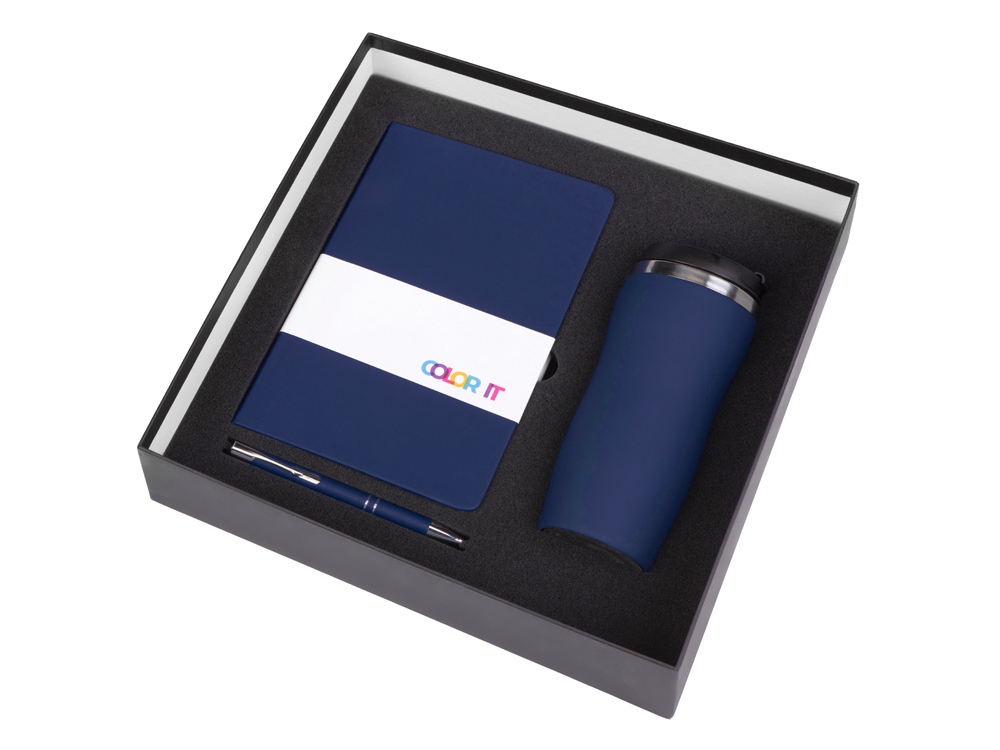 Подарочный набор с блокнотом С3, металлической ручкой и термокружкой, темно-синий