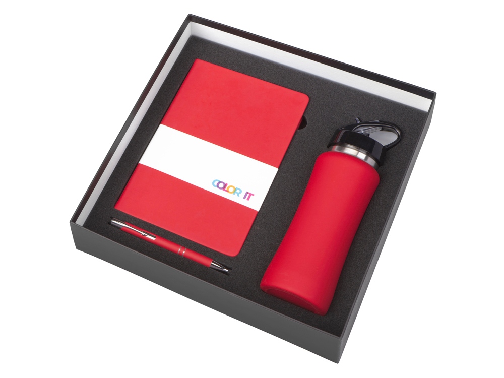 Подарочный набор с блокнотом С2, металлической ручкой и бутылкой для воды, красный