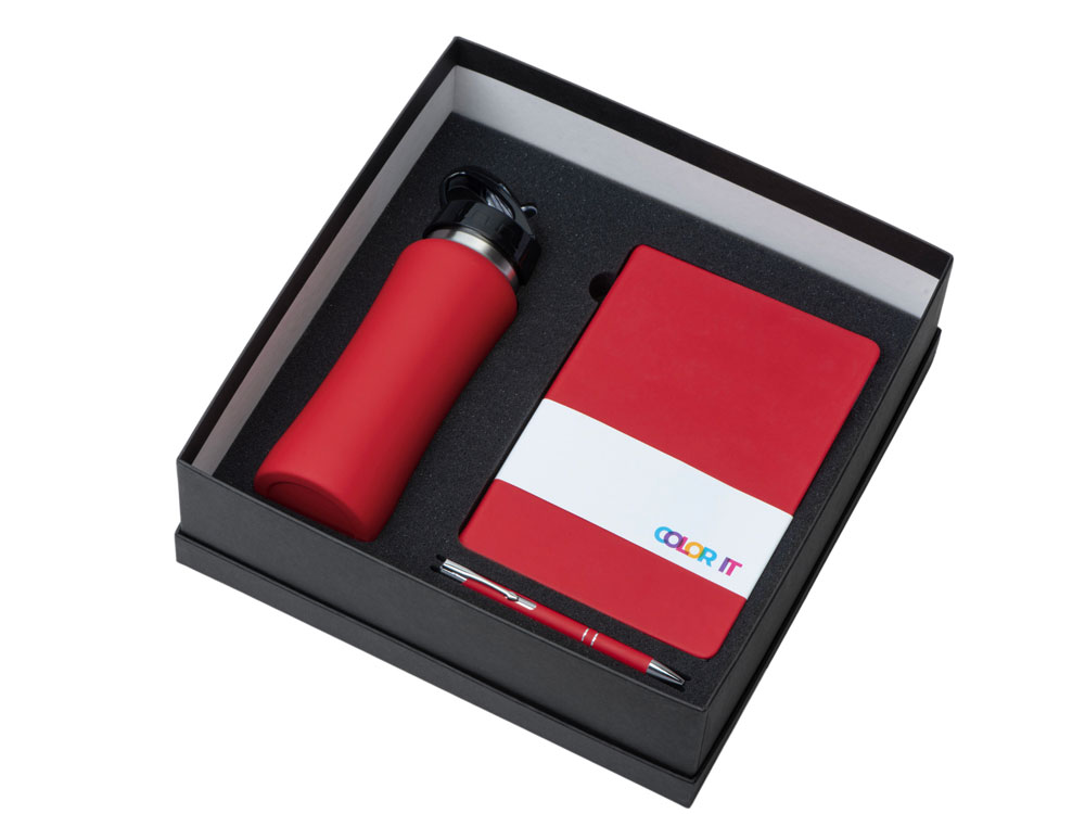 Подарочный набор с блокнотом С3, металлической ручкой и бутылкой для воды, красный