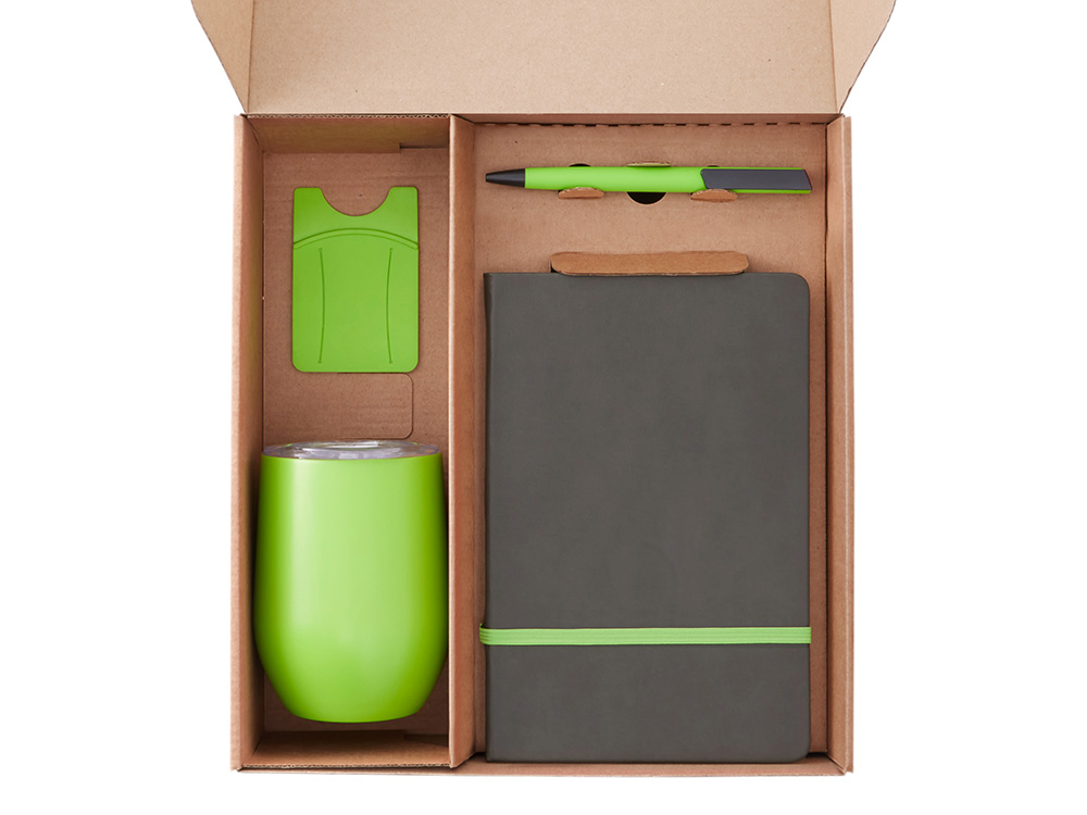 Набор с термокружкой, блокнотом, ручкой и ланчбоксом Refreshment, зеленое яблоко