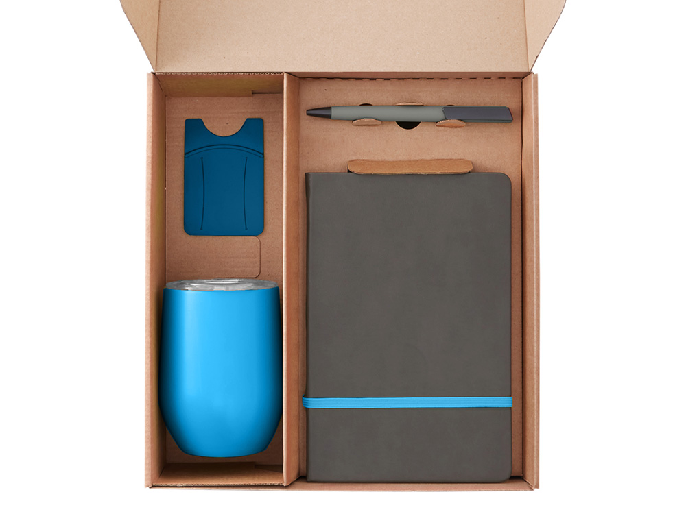 Набор с термокружкой, блокнотом, ручкой и ланчбоксом Refreshment, голубой