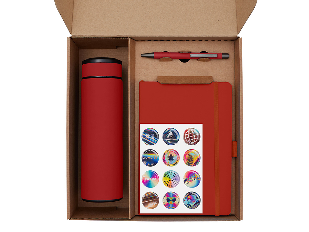 Подарочный набор с термосом, блокнотом, ручкой и чаем, красный