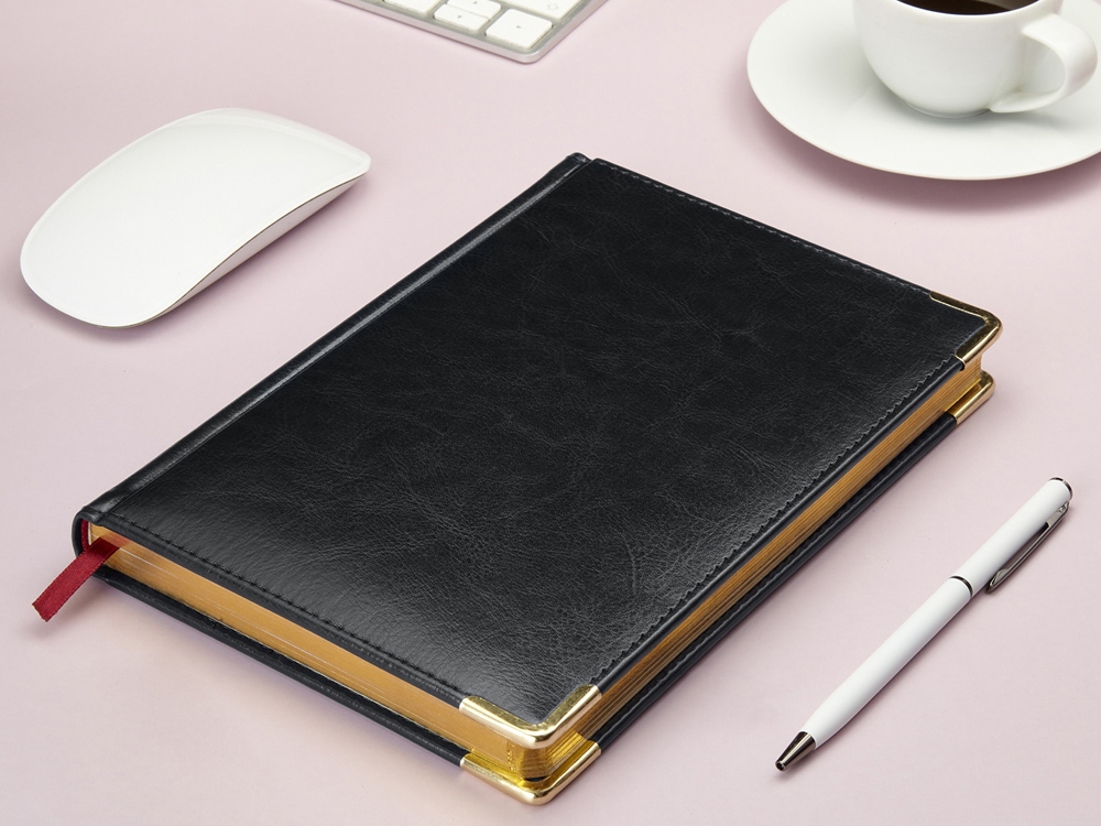 Ежедневник А5 датированный Sidney Nebraska 2026, черный (золотой обрез, золотые уголки)