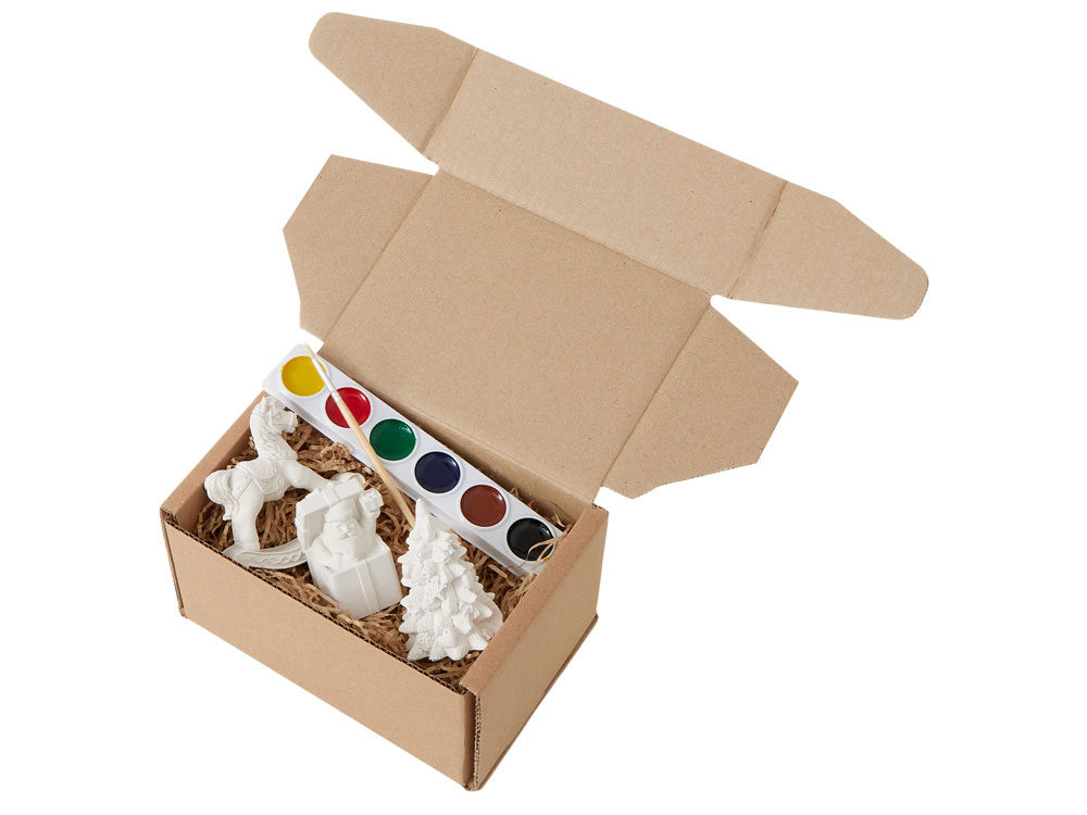 - Комплектность 3 гипсовых фигурки, акварельные краски, 1 кисточка