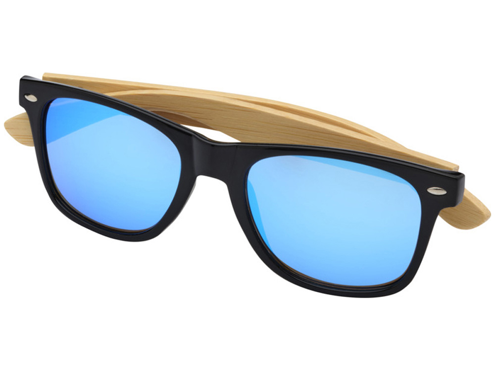 Солнцезащитные очки Hue с бамбуковыми дужками - Cиний / Натуральный