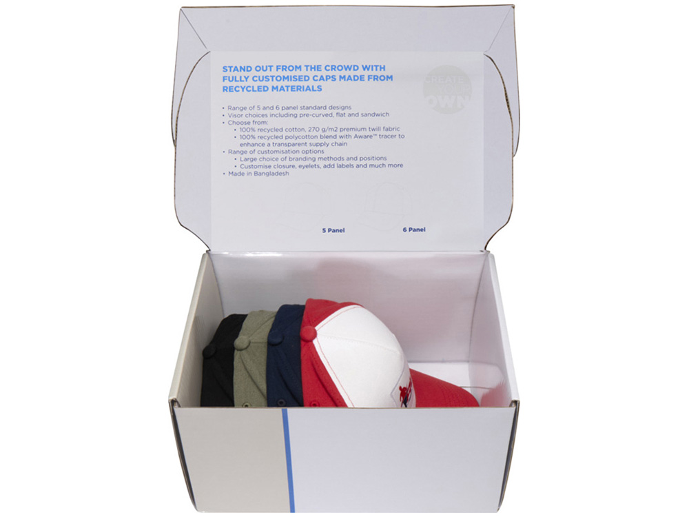 Коробка с образцами бейсболок из переработанных материалов - Белый