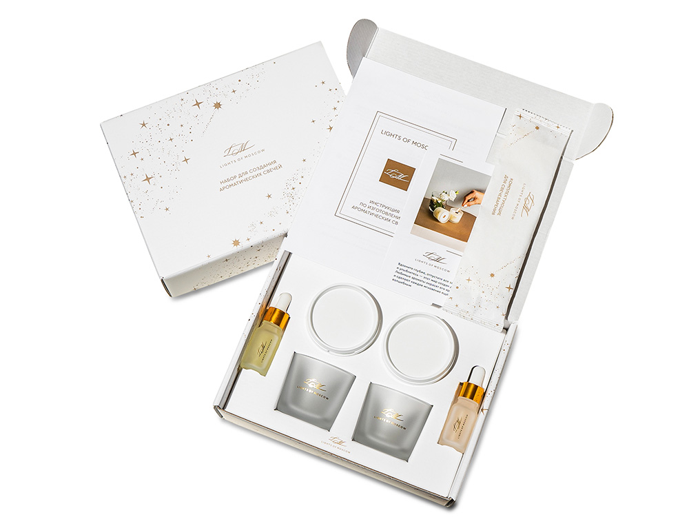 Набор для создания 2-х ароматических свечей: амбра и табак/маракуйя, сандал и пачули