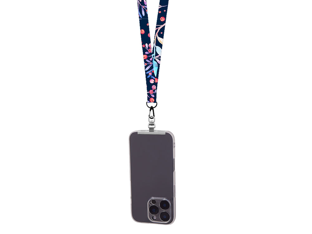 Ланъярд 2 см под сублимацию с трендовым карабином и металлическим держателем для телефона, черный