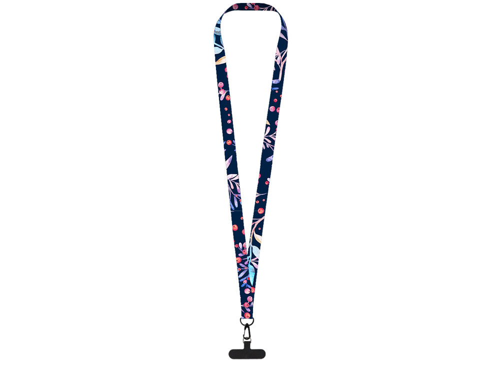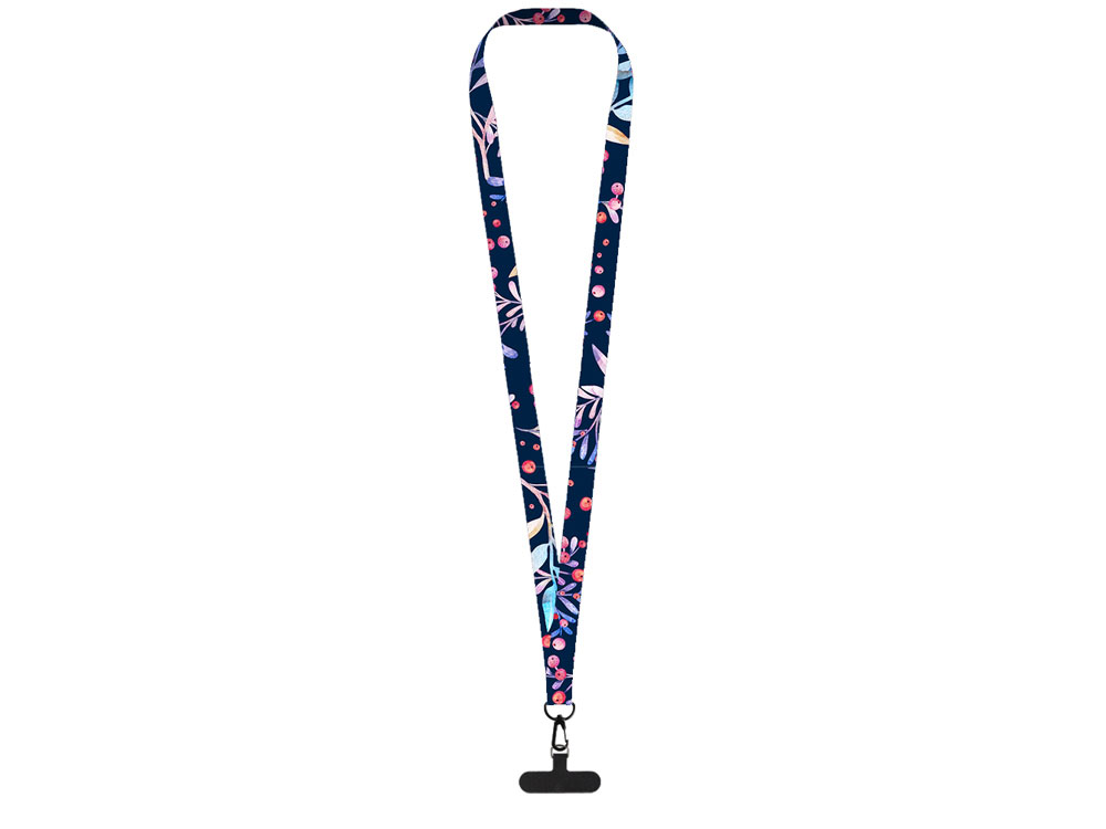 Ланъярд 2 см под сублимацию с трендовым карабином и узким держателем для телефона из ПЭ, черный