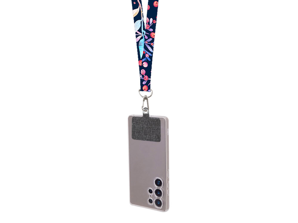 Ланъярд 2 см под сублимацию с трендовым карабином и большим держателем для телефона из ПЭ, серебристый