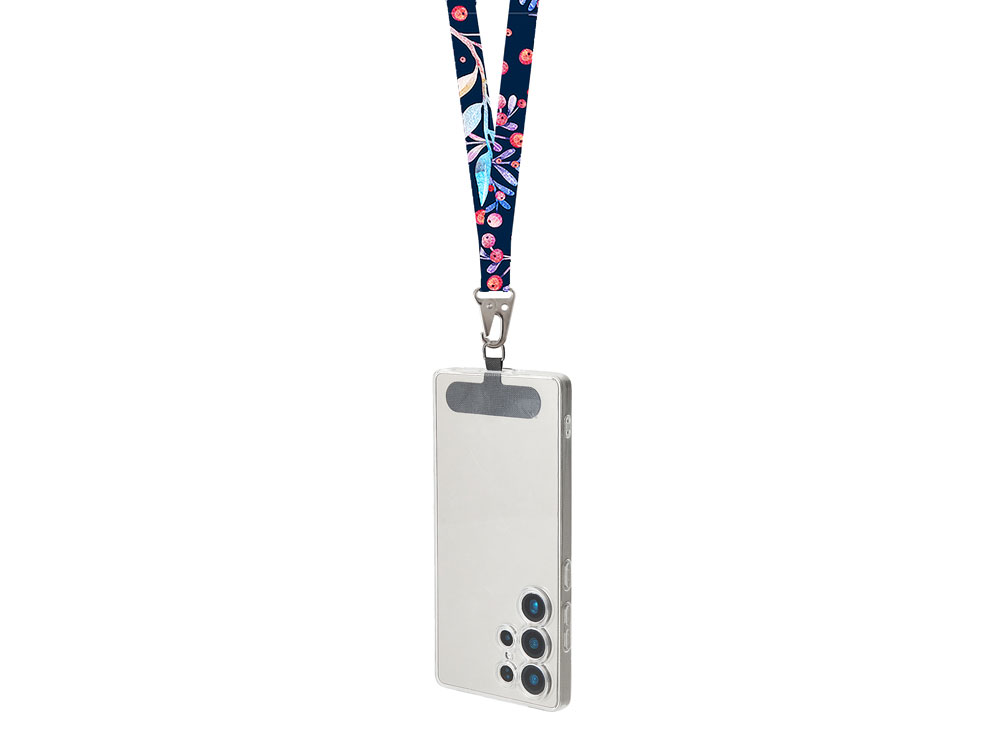 Ланъярд 2,5 см под сублимацию с большим карабином и узким держателем для телефона из ПЭ
