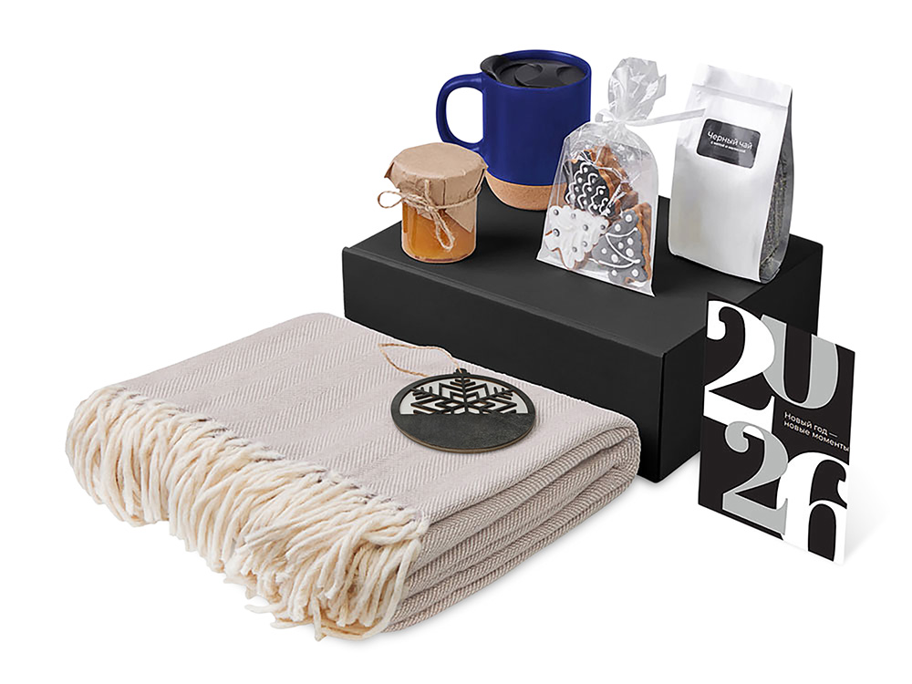 - Материал товара плед - 100% хлопок; кружка - керамика, пробка; подвеска - дерево; открытка - бумага