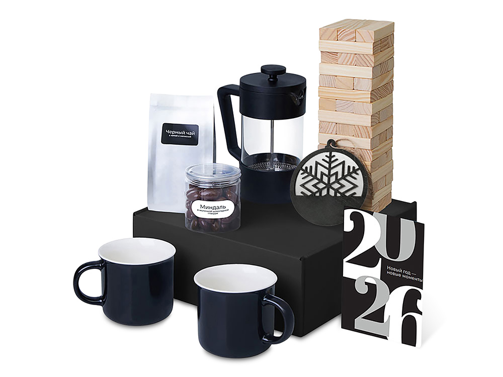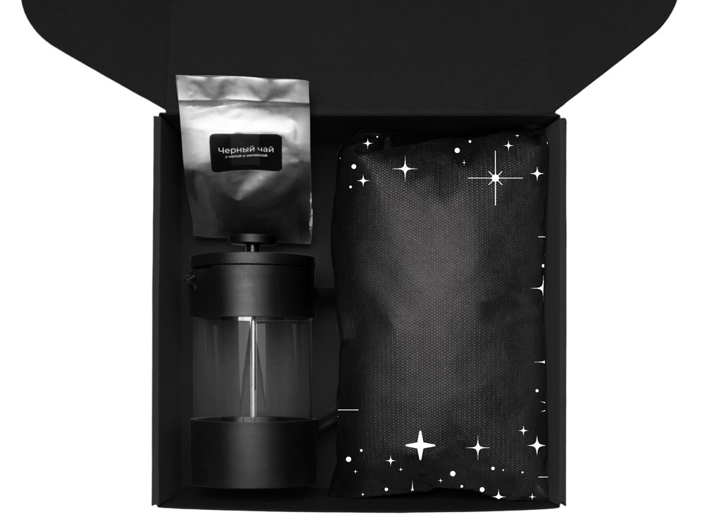Подарочный набор c френчпрессом, кружками и чаем, черный