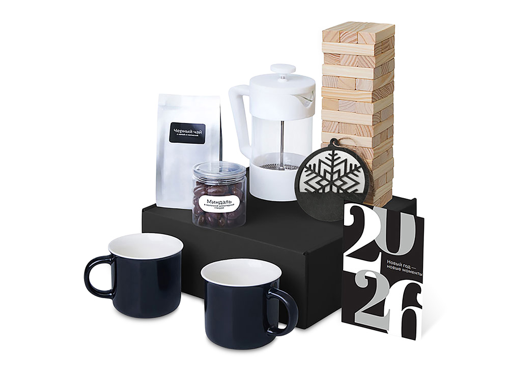 Подарочный набор c френчпрессом, кружками и чаем, белый