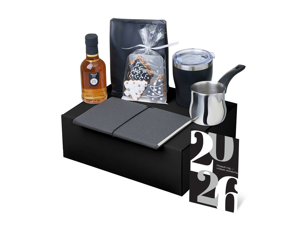 Подарочный набор с туркой, кофе и термокружкой, серый