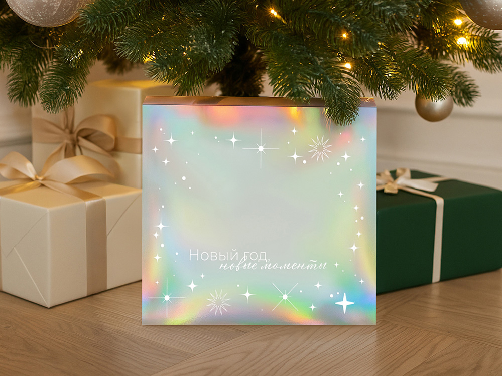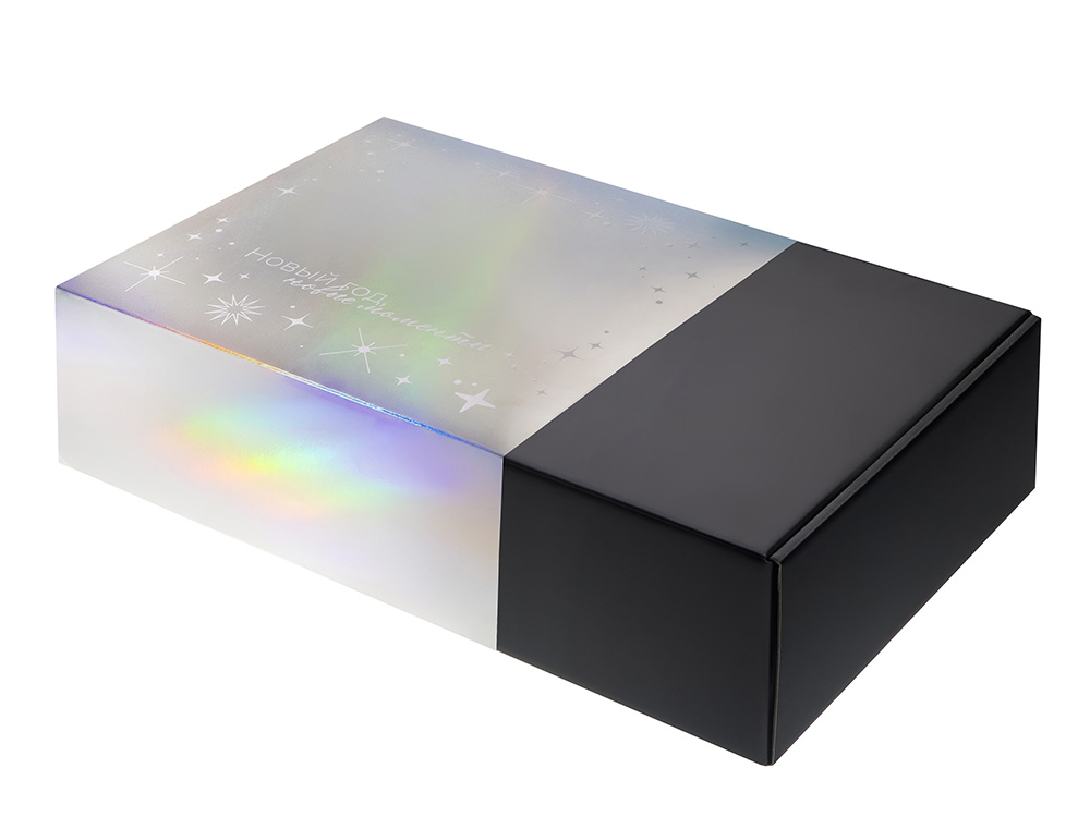 Подарочная коробка с голографическим шубером Aurora, L, вн. размер 260х260х100 мм.