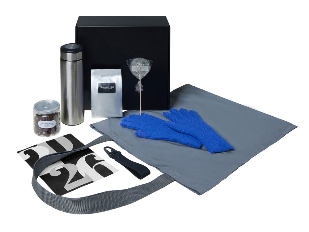 Подарочный набор с перчатками, термосом и чаем, синий