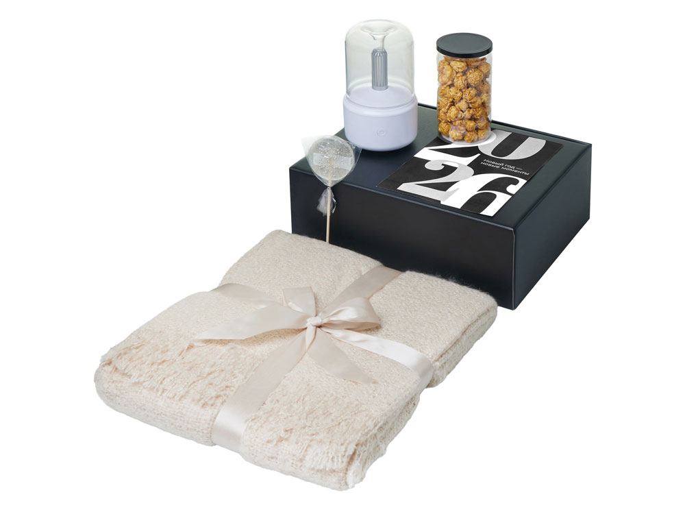 Подарочный набор с пледом, увлажнителем и попкорном, бежевый